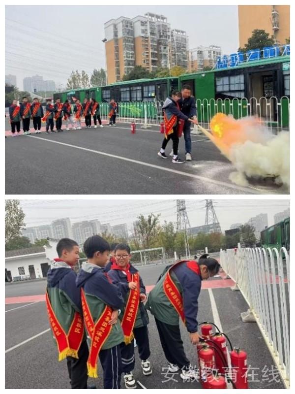 本次活動還特別加入了消防知識的科普環節。為了增強隊員們的防火安全意識,戴站長介紹了汽車火災的常見原因以及如何預防火災。隊員們在戴站長的帶領下,親自體驗了干粉滅火器的使用。面對模擬火災場景,孩子們一邊聽從指揮,一邊熟練地操作滅火器,將“火勢”成功撲滅。看到熊熊“火焰”被撲滅,隊員們紛紛歡呼,成就感油然而生。通過這次實際操作,隊員們不僅學會了滅火器的使用方法,更深刻感受到“安全無小事”的道理。這些生動的實踐活動使他們意識到,交通安全和消防知識不僅是書本上的內容,更是生活中保護自己和他人的有力武器。
