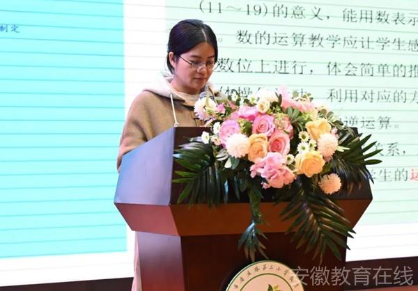 隨后匯報的是長江路第三小學(xué)海棠花園校區(qū)“基于數(shù)數(shù),聚焦計數(shù)單位,發(fā)展數(shù)感”的單元整體設(shè)計,她在具體實施過程中更加明確了數(shù)的意義和數(shù)的運算的一致性—都是計數(shù)單位的個數(shù)累加。值得一提的是,她還增加了一個課時的內(nèi)容—《數(shù)學(xué)繪本之古今計數(shù)大pk》:通過問題“原始人是怎么計數(shù)的”,體會數(shù)學(xué)來源于生活;通過“古今計數(shù)大pk”,感受學(xué)數(shù)學(xué)的樂趣。同時播放了一些學(xué)生的實踐視頻,更直觀展示了新教材的實踐成果。 最后匯報的是逍遙津小學(xué)教育集團(tuán)“聚焦認(rèn)數(shù)核心概念,凸顯算理算法融通”的設(shè)計與實施,她根據(jù)單元內(nèi)容分析總結(jié)了本單元教材的編排特點,指出新教材讓學(xué)生經(jīng)歷完整的數(shù)的抽象過程,從而感受加減法運算本質(zhì)的一致性,并且在具體操作中,感受數(shù)的意義和數(shù)的運算之間的聯(lián)系,發(fā)展核心素養(yǎng)。在單元評價上根據(jù)學(xué)生課堂表現(xiàn)設(shè)計了多維度、多主體的評價量表,給在場觀摩學(xué)習(xí)的老師提供了有力的參考。 第二階段是合肥市長江路第二小學(xué)橡樹灣校區(qū)的宋國健老師帶來的《對比新教材,感悟多元表征》的講座。宋老師指出他通過對比新舊教材最大的感受是“豐富”:更豐富的指代物和更豐富的表征方式,能讓學(xué)生能從多角度和多維度去認(rèn)識數(shù)。并且對表征進(jìn)行了詳細(xì)的案例分析,最后就“新教材的多元表征形式是否還具備其他意義和價值”這個問題,從新課標(biāo)和教學(xué)兩個不同角度提出了自己的思考,宋老師透徹、深入、獨特的解讀讓我們眼前一亮,更讓我們小數(shù)同仁對新教材的理解和把握又上升了一個新的臺階。 第三階段是廬陽區(qū)小學(xué)數(shù)學(xué)教研員李玲玲老師帶來《單元整體教學(xué)的行與思》講座,她首先對今天各校匯報工作給予了高度肯定,表揚各校都有自己獨立的思考。指出無論是認(rèn)識整數(shù)、小數(shù)還是分?jǐn)?shù),都是以數(shù)軸這一表征作為媒體,來統(tǒng)一學(xué)生對數(shù)的認(rèn)識,實現(xiàn)了認(rèn)數(shù)方法的統(tǒng)一。當(dāng)從方法上統(tǒng)一了思想,不僅能減輕學(xué)生的認(rèn)知難度,同時也能減輕教師教的難度。李老師希望所有教師能有更多深入的思考,形成自己的認(rèn)知維度。并指出教學(xué)時一定要契合學(xué)生的實際,從而實現(xiàn)教、學(xué)、評的一致性。