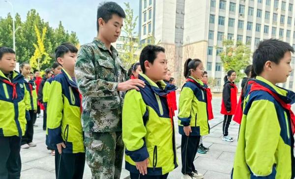 隨后,軍事訓練體驗環節拉開帷幕。在安徽國防科技職業學院專業教官的指導下,隊員們以飽滿的精神狀態投入隊列訓練,從立正、稍息到標準敬軍禮,不僅鍛煉了隊員們的紀律意識與團隊協作能力,更讓他們親身體會到軍人的堅毅與擔當。 活動最后,“心系國防,強國有我”主題講座如期舉行。講師司友喚結合國防歷史與當下國際形勢,用鮮活的故事、翔實的數據,講述國防建設的重要性,號召隊員們將個人理想與國家命運緊密相連,從小樹立“愛黨愛國愛軍”的遠大志向。