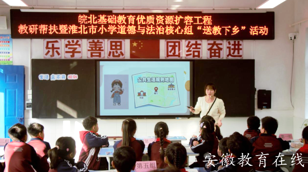 為深入推進(jìn)皖北基礎(chǔ)教育優(yōu)質(zhì)資源擴(kuò)容工程,提升小學(xué)思政課程教學(xué)質(zhì)量,由淮北市教育局教研室主辦的“皖北基礎(chǔ)教育優(yōu)質(zhì)資源擴(kuò)容工程教研幫扶暨淮北市小學(xué)道德與法治核心組‘送教下鄉(xiāng)’活動(dòng)”于11月13日在一實(shí)小烈山分校舉行。本次活動(dòng)以“聚焦新教材、深化校本教研”為主題,吸引了來自皖北擴(kuò)容工程新優(yōu)質(zhì)學(xué)校、淮北市小學(xué)道德與法治學(xué)科核心組、徐華名師工作室及烈山區(qū)小學(xué)思政骨干教師等教育工作者參與。