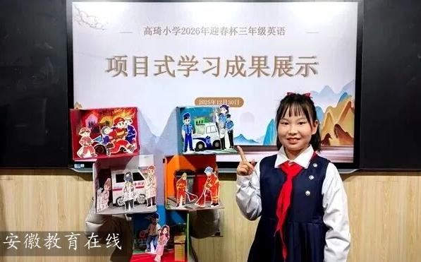 安徽教育在線訊 為檢驗英語學科項目化學習成果,搭建學生口語實踐與風采展示平臺,12月30日,高琦小學英語組精心策劃的2026年“迎春杯”英語口語展示活動在學校階梯教室順利舉行。本次活動聚焦三年級學子,以多元主題、創意表達彰顯了英語學習的實踐魅力,是學校推進英語教學改革的一次生動實踐。