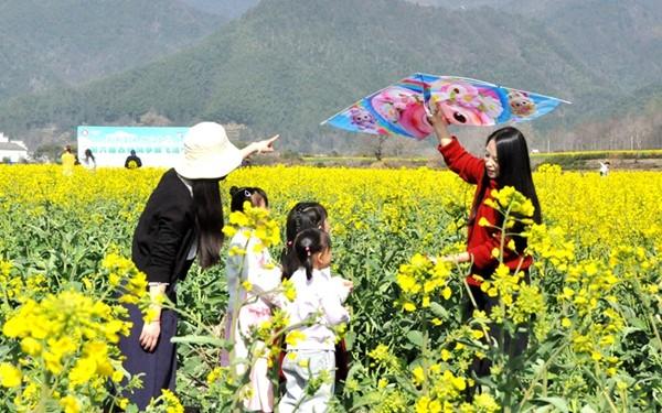 家長與文化館工作人員帶領(lǐng)孩子漫步花海,結(jié)合徽州本土風物,引導孩子觀察油菜花的形態(tài)與生長環(huán)境,分享春日自然知識和鄉(xiāng)土文化,讓孩子們領(lǐng)略家鄉(xiāng)之美,萌發(fā)熱愛自然與家鄉(xiāng)的情感。