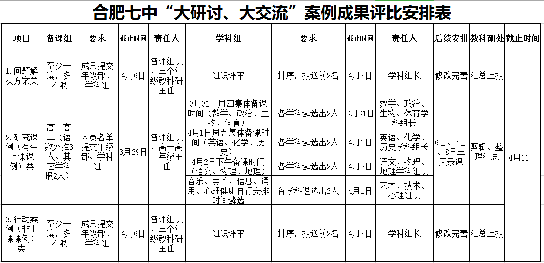 關于本次“大研討、大交流”成果評比,張永劍專門制作《一文讀懂:合肥七中“大研討、大交流”案例成果征集遴選方案》,幫助參會人員理解此次大研討、大交流案例成果征集的工作重點和時間節(jié)點,要求各學科組要根據文件精神落實人員,鼓勵團隊合作,排定時間表,級部備課組要進行指導。