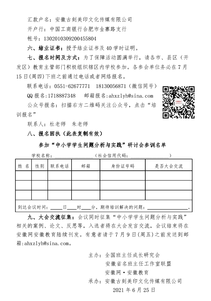 第四屆皖湘蘇魯粵五省中小學名班主任 ——“中小學學生問題分析與實踐”研討會邀請函
