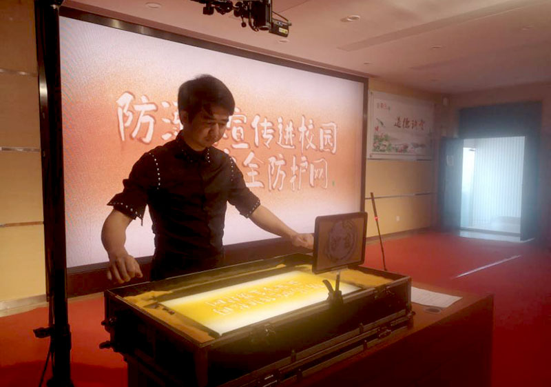 此次活動(dòng)得到了蜀山社區(qū)的大力支持,請(qǐng)來(lái)了沙畫(huà)老師現(xiàn)場(chǎng)進(jìn)行表演,此次的防溺水主題沙畫(huà)為原創(chuàng)作品,隨著一幅幅沙畫(huà)展現(xiàn)在學(xué)生眼前,演繹出了生動(dòng)而感人的防溺水小故事,引導(dǎo)學(xué)生們牢記防溺知識(shí)“六不一會(huì)”。詩(shī)情畫(huà)意的語(yǔ)言,抑揚(yáng)頓挫的語(yǔ)調(diào),頗富感染的背景音樂(lè),配上沙畫(huà)效果,讓學(xué)生在故事中發(fā)人深省,真正做到了入腦入心。