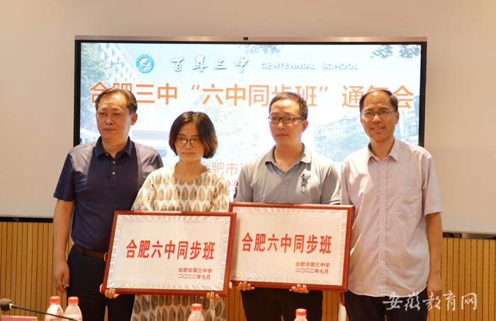 7月2日,合肥市第三中學(xué)“六中同步班”招生說明會(huì)順利召開。合肥市第六中學(xué)教育集團(tuán)黨委書記、校長李斌為合肥市第三中學(xué)“六中同步班”授牌,合肥市教育局宣傳處處長韋學(xué)華、合肥市第四十八中學(xué)教育集團(tuán)校長劉繼宏、合肥市廬陽中學(xué)教育集團(tuán)校長汪曉軍、合肥市第四十五中學(xué)教育集團(tuán)校長姚劍、合肥市行知學(xué)校教育集團(tuán)校長袁方正、合肥市第四十二中學(xué)教育集團(tuán)校長戴鵬程參加會(huì)議,合肥市第三中學(xué)黨委書記馬劍主持會(huì)議。