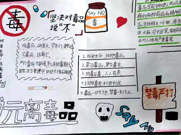 學(xué)校還組織開(kāi)展了手抄報(bào)活動(dòng),鼓勵(lì)學(xué)生圍繞禁毒主題展開(kāi)創(chuàng)作。同學(xué)們收集法律知識(shí),精心設(shè)計(jì)版面、繪制插圖,制作出一幅幅精美的手抄報(bào)。 禁毒宣傳活動(dòng)不僅提高了學(xué)生們對(duì)毒品危害的認(rèn)識(shí),更提高了禁毒意識(shí)與防范能力,為青少年?duì)I造一個(gè)積極健康的成長(zhǎng)環(huán)境。(胡舒怡) |