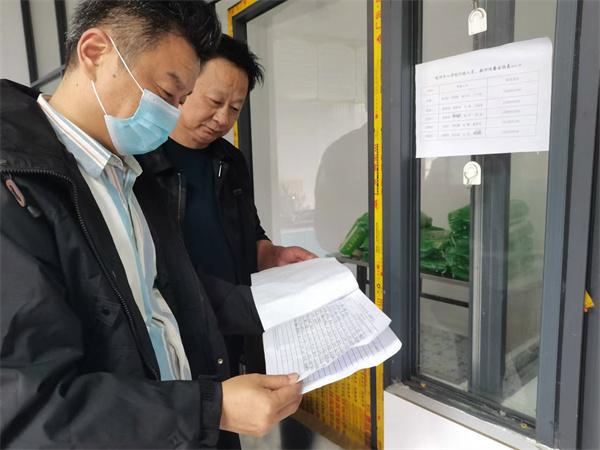 隨后,兩位每天核查食材的老師首先匯報情況。陳新華強調把好食品安全第一關,要重點查驗食材票證是否齊全、食材是否新鮮、有無變質腐爛食品、物資是否足量,核查人員要本著對全體師生生命健康和群眾利益高度負責的態度認真核查。